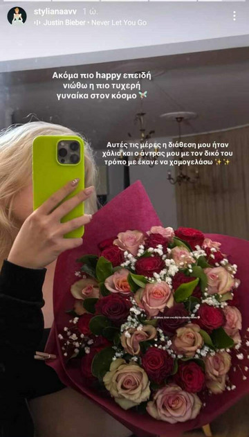 Το βράδυ της Τετάρτης, η Στυλιάνα Αβερκίου δημοσίευσε στον προσωπικό της λογαριασμό στο Instagram ένα τρυφερό στιγμιότυπο με τα λουλούδια που της έστειλε ο Φειδίας Παναγιώτου, συνοδευόμενο από μια δημόσια ερωτική εξομολόγηση.