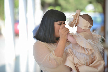 Η μικρή ήταν ασορτί με τη μανούλα της, κλέβοντας την παράσταση ενώ ορχήστρα με μουσικούς και ζωντανή μουσική απογείωσε το κέφι προς τιμή της μικρούλας Νάπας.