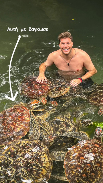 Μέσα από τις αναρτήσεις τους στο λογαριασμό του στο Instagram, μας έδειξε το μέρος που μένει καθώς κι ένα γλυκό στιγμιότυπο με ένα ντόπιο κοριτσάκι. Μάλιστα, ο τραγουδιστής αντιμετώπισε κι ένα απρόοπτο καθώς ενώ βρισκόταν σε λίμνη και κολυμπούσε με γιγάντιες χελώνες, τον δάγκωσε μία από αυτές.