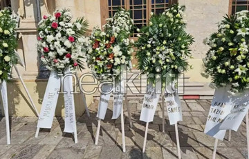 Στεφάνια κατέθεσαν ο Σωκράτης Μάλαμας, ο Νίκος Μακρόπουλος, που ήταν πολύ καλοί του φίλοι, η ΠΑΕ ΟΦΗ και πολλοί άλλοι. “Καλό ταξίδι αδελφέ”, γράφει στο στεφάνι του Νίκου Μακρόπουλου έξω από τον Μητροπολιτικό Ναό του Αγίου Μηνά, όπου τελείται η εξόδιος ακολουθία.