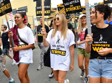 Ο λόγος για τη Margot Robbie, που μαζί με τους συναδέλφους της ηθοποιούς και σεναριογράφους διαδήλωσαν για τα δικαιώματά τους σε συγκέντρωση της SAG-AFTRA.
