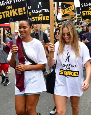 Η δημοφιλής ηθοποιός κρατούσε ένα πλακάτ και ακολούθησε την πορεία από τα γραφεία του Netflix στα στούντιο της Paramount μαζί με τους υπόλοιπους διαδηλωτές στο Δυτικό Χόλιγουντ. Μάλιστα, φρόντισε να φοράει τη λευκή μπλούζα με το λογότυπο του Σωματείου των ηθοποιών που αναγράφει τη λέξη «απεργία».