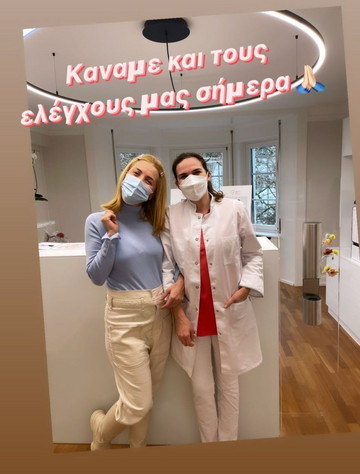Μιας και η εγκυμοσύνη άρχισε να φαίνεται, η όμορφη δημοσιογράφος παρουσιάστηκε στην γιατρό για να κάνει τις απαραίτητες εξετάσεις. Αφού όλα στις εξετάσεις φαίνεται οτι ήταν μια χαρά, με ένα μεγάλο χαμόγελο στα χείλη πόζαρε μαζί με την γιατρό δείχνοντας μας για άλλη μια φορά τη χαριτωμένη, φουσκωμένη της κοιλίτσα.