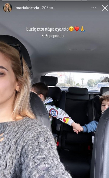Στην φωτογραφία που ανέβασε η Μαρία, φαίνονται οι μικροί Σοφοκλής και Γιώργος να κρατάνε χεράκια. Το story συνόδευε η λεζάντα: “Εμείς έτσι πάμε σχολείο”.