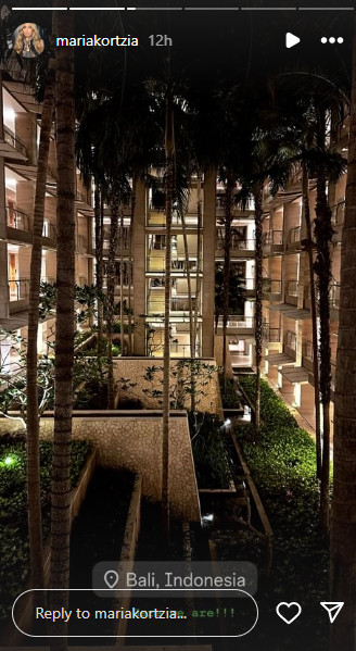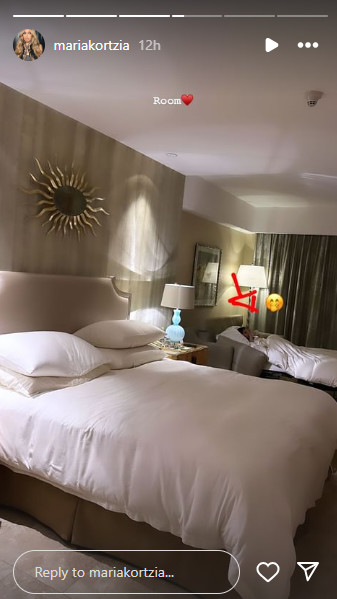 Το ζευγάρι, μετρά μόλις ένα 24ωρο εκεί και η Μαρία Κορτζιά που έχει άριστη σχέση με τα social media, φρόντισε να μοιραστεί με τους διαδικτυακούς της φίλους τα πρώτα στιγμιότυπα των διακοπών τους. Αφού, πρώτα ανέβασε κάποιες φωτογραφίες από το αεροπλάνο, στη συνέχεια μας έδειξε το δωμάτιο στο οποίο θα περάσει τις επόμενες ημέρες μαζί με τον άντρα και τα παιδιά της.