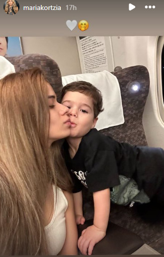 Συγκεκριμένα είδαμε στιγμές, τόσο από τον χώρο αναμονής πριν εισέλθουν στο αεροπλάνο, όσο και από την καμπίνα του αεροσκάφους. Η Μαρία, ανέβασε μια selfie από το αεροπλάνο μαζί με τον μικρό Γιώργο, στην οποία μαμά και γιος ανταλλάζουν ένα γλυκό φιλί.