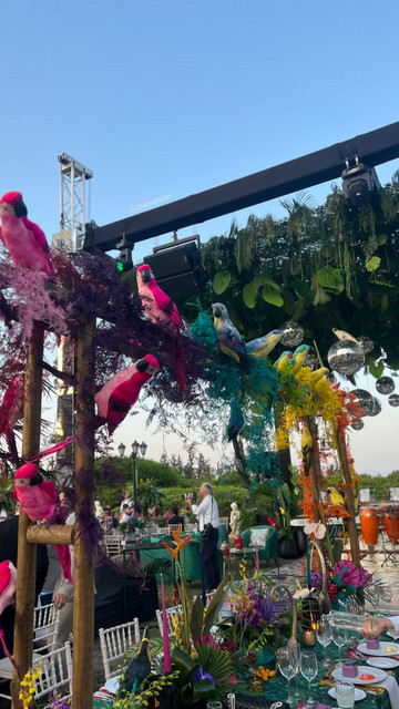 Η διακόσμηση ήταν άκρως εντυπωσιακή αφού το ζευγάρι ξέφυγε από τα συνηθισμένα επιλέγοντας έντονα χρώματα και discο balls ως κύρια στοιχεία της διακόσμησης.