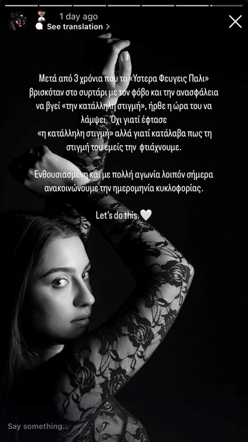 Όπως η ίδια αναφέρει: «Μετά από 3 χρόνια που το τραγούδι μου “Ύστερα Φεύγεις Πάλι” βρισκόταν στο συρτάρι με τον φόβο και την ανασφάλεια να βγει “την κατάλληλη στιγμή”, ήρθε η ώρα του να λάμψει. Όχι γιατί έφτασε η κατάλληλη στιγμή αλλά επειδή κατάλαβα πως αυτή τη στιγμή εμείς την φτιάχνουμε. Ενθουσιασμένη και με πολλή αγωνία λοιπόν ανακοινώνω την κυκλοφορία του πρώτου μου τραγουδιού».
