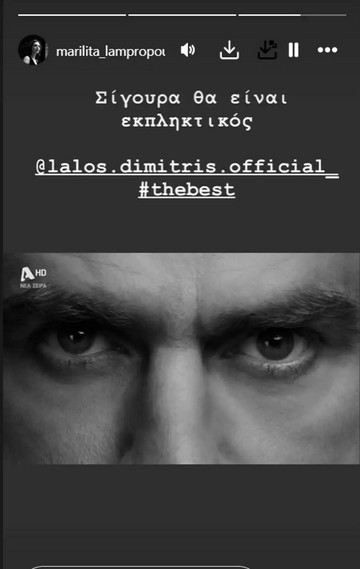 Η Μαριλίτα Λαμπροπούλου, που υποδυόταν τη Βασιλική, τον μεγάλο έρωτα του Μαθιού στον “Σασμό”, μοιράστηκε το teaser της νέας σειράς στα social media, δείχνοντας έτσι τη στήριξή της για τον πρώην συμπρωταγωνιστή της. Η αγαπημένη ηθοποιός, η οποία φαίνεται πως θαυμάζει πολύ τον Δημήτρη Λάλο έγραψε «Σίγουρα θα είναι καταπληκτικός».