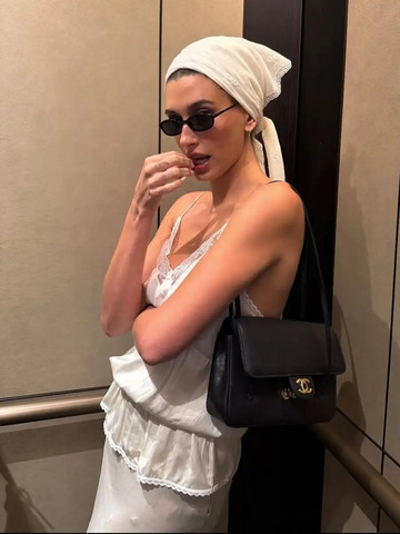 Το μαντήλι στα μαλλιά πρόσθεσε μια ανεπιτήδευτη, σχεδόν ιταλική αύρα, ενώ η statement τσάντα και τα minimal αξεσουάρ ισορρόπησαν τη θηλυκότητα με μια μοντέρνα καθαρότητα. Είναι ακριβώς αυτή η ισορροπία που κάνει το lingerie dressing να δείχνει φρέσκο και επίκαιρο.