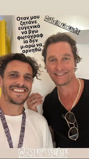 Το συγκεκριμένο μαγαζί μάλιστα, ανήκει στον ηθοποιό Σταύρο Σβήγκο, ο οποίος και ανέβασε μια κοινή τους φωτογραφία στα social media, αποκαλύπτοντας με χιούμορ το περιστατικό. «Όταν μου ζητάνε ευγενικά να βγω φωτογραφία, δεν μπορώ να αρνηθώ», έγραψε χαρακτηριστικά ο Σταύρος Σβήγκος πάνω στο story που δημοσίευσε στο Instagram, ποζάροντας χαμογελαστός δίπλα στον διάσημο επισκέπτη του.