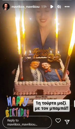 Μάλιστα, το πάρτι που διοργάνωσε ήταν μαζί με τον πατέρα του, Γιώργο καθώς έχουν γενέθλια με μια μέρα διαφοράς. Η τούρτα που έσβησαν ήταν κοινή, με φωτογραφία τους πάνω. Ο γνωστός Κύπριος τραγουδιστής έγινε 32 ετών ενώ ο πατέρας του 67 ετών.