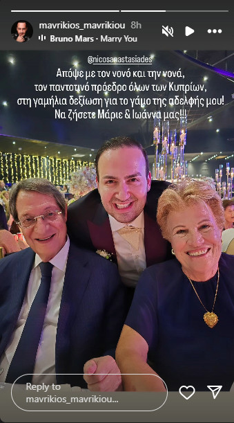 Στη συνέχεια, ο γνωστός μουσικός, δημοσίευσε μια φωτογραφία από το δείπνο του γάμου μαζί με τους νονούς του, Νίκο και Έλσα Αναστασιάδη!
