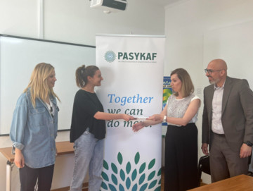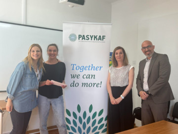 Δείτε φωτογραφίες από την στιγμή της παραλαβής με την Χριστιάνα Αριστοτέλους και την Ιωάννα Λαμπροπούλου να δίνουν 2.000 ευρώ στον Νικόλα Φιλίππου, Εκτελεστικό Διευθυντή του ΠΑΣΥΚΑΦ και στην Σόφη Χριστοφόρου, Αναπληρώτρια Εκτελεστική Διευθύντρια.