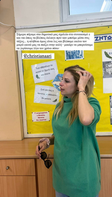 Η ίδια, όπως είδαμε μέσα από τα stories του Χάρη Παπαθεοχάρους, αφέθηκε στις μνήμες του παρελθόντος και δάκρυσε όταν βρέθηκε στο σχολείο.