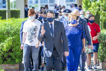 Με τη σύζυγο του Άντρη και τα εγγονάκια του έφθασε στο Λανίτειο Λύκειο για να ασκήσει το εκλογικό του στέλνοντας μήνυμα στους πολίτες να προσέλθουν στις κάλπες και να ασκήσουν το εκλογικό τους δικαίωμα με υπευθυνότητα.