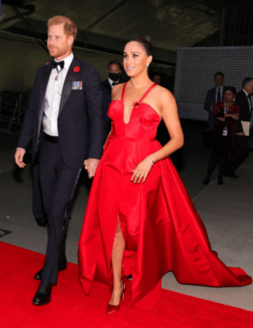 Όπως ήταν αναμενόμενο, η Meghan Markle έκλεψε την παράσταση όταν έφτασε στο gala με το υπέροχο φόρεμά της, το οποίο είχε βαθύ ντεκολτέ και άνοιγμα στο κάτω μέρος, που αναδείκνυε τα καλλίγραμμα πόδια της. Την εμφάνισή της ολοκλήρωσε με ένα διαμαντένιο βραχιόλι που άνηκε στην Πριγκίπισσα Diana και τα Maison Birks σκουλαρίκια της.