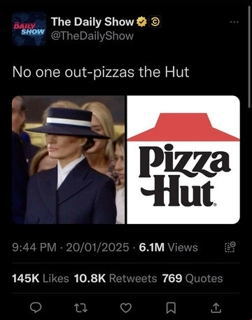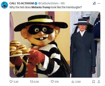 Το καπέλο, που κάλυπτε το πάνω μέρος του προσώπου της, προσέδωσε μια αίσθηση μυστηρίου και κομψότητας στο σύνολό της. Παράλληλα, το ιδιαίτερο αυτό αξεσουάρ έγινε αντικείμενο σχολιασμού στα μέσα κοινωνικής δικτύωσης, με τους χρήστες να δημιουργούν ευφάνταστα memes. Οι παραλληλισμοί με χαρακτήρες από κινούμενα σχέδια, κακούς από ταινίες και διαφημίσεις έκαναν την εμφάνιση της Μελάνια viral.