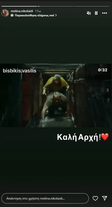 «Καλή Αρχή» ευχήθηκε στον Βασίλη Μπισμπίκη και η Μελίνα Νικολαΐδη, η οποία το απόγευμα της Πέμπτης 23 Οκτωβρίου έκανε ανάρτηση με την παράσταση, λίγες ώρες πριν την πρεμιέρα.