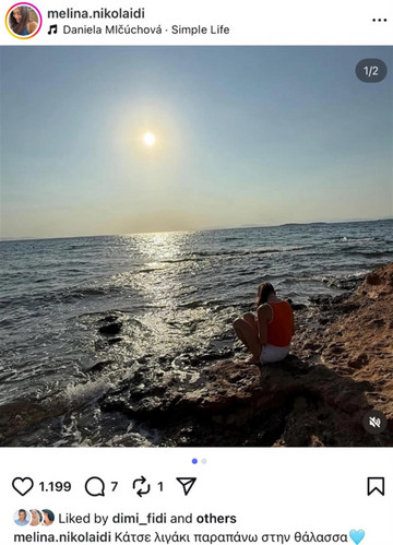 Μια καλοκαιρινή, ατμοσφαιρική φωτογραφία από την ακρογιαλιά μοιράστηκε με τους ακολούθους της η Μελίνα Νικολαΐδη το Σάββατο 9 Αυγούστου, και όπως φαίνεται, δεν πέρασε απαρατήρητη… ούτε από τον πρώην της.