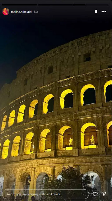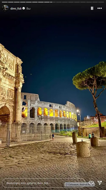 Ωστόσο, λίγο πριν φύγει το καλοκαίρι, το ερωτευμένο ζευγάρι θέλησε να κάνει ακόμα μια ρομαντική απόδραση, αυτή τη φορά εκτός Ελλάδας. Πιο συγκεκριμένα, το βράδυ της Πέμπτης, 29 Αυγούστου ο Δημήτρης Φιντιρίκος αποκάλυψε το ταξίδι του στη Ρώμη δημοσιεύοντας φωτογραφία από το Κολοσσαίο, εκεί όπου βρέθηκε και η Μελίνα Νικολαΐδη η οποία μοιράστηκε αντίστοιχο στιγμιότυπο στα social media.