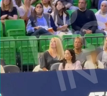 Η Ελένη Μενεγάκη βρέθηκε στο ΟΑΚΑ για να παρακολουθήσει τον αγώνα τένις του Νόβακ Τζόκοβιτς με τον σύζυγό της, Μάκη Παντζόπουλο.