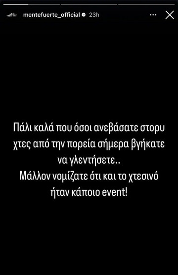 Με μία ανάρτησή του στα Instagram Stories, ο Mente Fuerte άφησε να εννοηθεί ότι κάποιοι εκμεταλλεύτηκαν την σοβαρότητα της ημέρας ως ευκαιρία για δημόσιες εμφανίσεις και διασκέδαση.