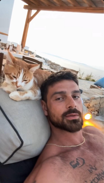 Ο ίδιος ανέβασε στον προσωπικό του λογαριασμό στο Instagram μια φωτογραφία από το μέρος που διαμένει, έχοντας στο πλευρό του μια γάτα, αλλά και μια αφιέρωση που έκανε στον φίλο του και γνωστό Pr Manager της Ελλάδας, Ανέστη Ευαγγελόπουλο αναφέροντας ότι είναι μια όμορφη ψυχή και τις ευχαριστίες του για το δώρο που του έκανε.