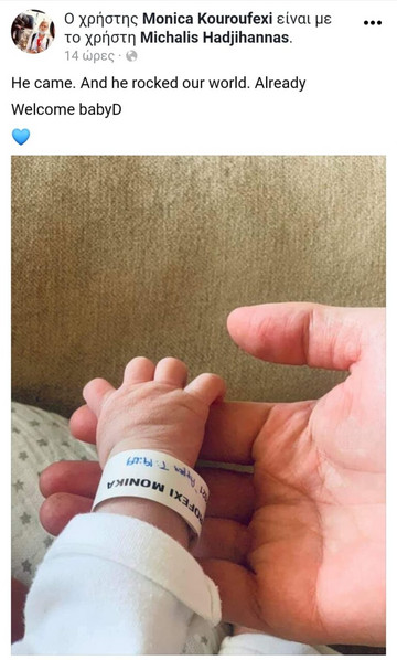 Την χαρμόσυνη είδηση γνωστοποίησε η ίδια, η Μόνικα Κουρουφέξη με μία ανάρτηση της στον προσωπικό της λογαριασμό στο Facebook. Πιο συγκεκριμένα η δημοσιογράφος φωτογράφισε το χεράκι του νεογέννητου μωρού της από το μαιευτήριο.