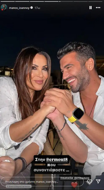 Η Ναταλία Γερμανού και ο Μάνος Ιωάννου συναντήθηκαν στο κέντρο της Αθήνας σε γνωστό εστιατόριο με φόντο την Ακρόπολη. Ο ηθοποιός μοιράστηκε φωτογραφία κρατώντας το χέρι της παρουσιάστριας.