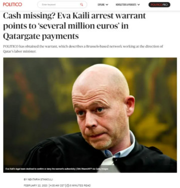 Σε νέα αποκάλυψη για την Εύα Καϊλή και την εμπλοκή της στο Qatargate προχωρά το Politico, επικαλούμενο το ένταλμα σύληηψης που εκδόθηκε σε βάρος της και στο οποίο αναφέρεται ότι «αρκετά εκατομμύρια ευρώ» παραδόθηκαν στους βασικούς υπόπτους του σκανδάλου.