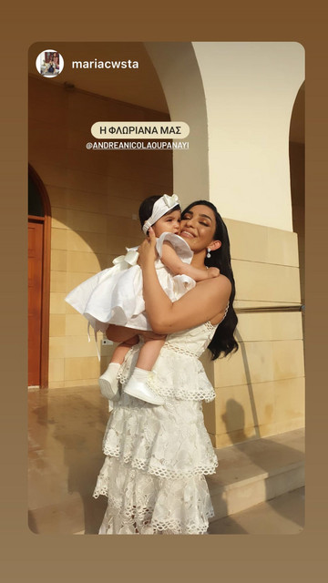 Το μυστήριο έλαβε χώρα στον Ιερό Ναό Αγίου Γεωργίου στο Μάμμαρι, ενώ νονά της μικρής Φλωριάνας Παναγή ήταν η αδερφή της ευτυχισμένης μανούλας, Τζίνα Νικολάου.