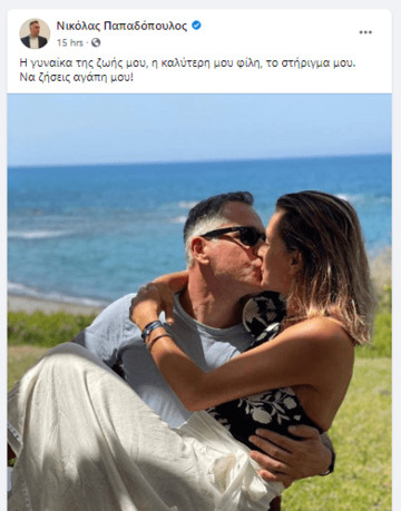 Η σύζυγος του Προέδρου του ΔΗ.ΚΟ, Γιώτα Παπαδοπούλου, είχε τα γενέθλια της και τα social media είχαν κατακλυστεί από εορταστικές φωτογραφία και τρυφερές ευχές. Ανάμεσα σ’ αυτούς που κοινοποίησαν υλικό, ήταν και ο Νικόλας Παπαδόπουλος, ο οποίος θέλησε να μοιραστεί μια άκρως ερωτική φωτογραφία και να μοιραστεί τις ευχές του.