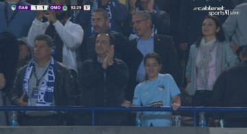 Στο πλευρό του Νίκου Χριστοδουλίδη πανηγύρισε και η κόρη του, που παρακολούθησε το παιχνίδι ντυμένη στα γαλάζια και με τη φανέλα της αγαπημένης της ομάδας.