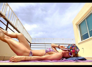 Με ένα σέξι μαγιο μπικίνι, ανέβηκε στην ταράτσα του σπιτιού της, προκειμένου να χαρεί έστω και έτσι τον ήλιο. Η ίδια δημοσίευσε και μια φωτογραφία στον προσωπικό της λογαριασμό στο Instagram γράφοντας: