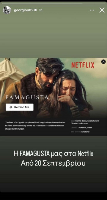 “Η Famagusta μας μπαίνει στο Netflix στις 20 Σεπτεμβρίου” γράφει η ανάρτηση του Αντρέα Γεωργίου.
