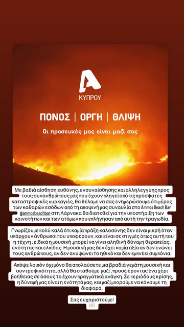 Μέσα από αναδημοσίευση story του Alpha Κύπρου στον προσωπικό του λογαριασμό στο Instagram, ο Κωνσταντίνος Αργυρός έστειλε ένα συγκινητικό μήνυμα: «Η μουσική δεν έχει καμία αξία αν δεν ενώνει τους ανθρώπους, αν δεν ανυψώνει το ηθικό και δεν εμπνέει συμπόνια. Σε περιόδους κρίσης, η δύναμή μας είναι η ενότητά μας. Και μαζί μπορούμε να κάνουμε τη διαφορά.»
