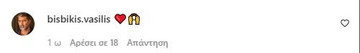 Στο στιγμιότυπο που ανέβασε στο account της μάλιστα έδωσε το παρών και ο Βασίλης Μπισμπίκης, ο οποίος της σχολίασε αφήνοντας κάποια emoji, ανάμεσά τους και μία κόκκινη καρδιά.