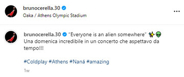 Πρώτη φορά που πρόσθεσε το συγκεκριμένο hashtag σε ανάρτησή του, ήταν όταν δημοσίευσε στιγμιότυπα από τη συναυλία των Coldplay στην Αθήνα… Εκεί που το ζευγάρι πραγματοποίησε και την πρώτη του κοινή εμφάνιση.