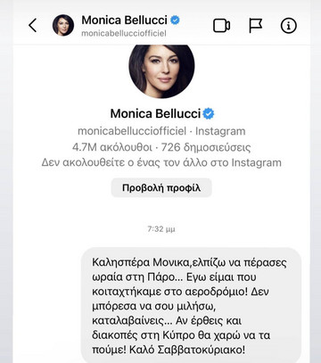 Ο δημοσιογράφος με μια ανάρτηση στα social media ενημέρωσε τους ακόλουθους του ότι συναντήθηκε με την Μόνικα Μπελούτσι και… αντάλλαξαν βλέμματα.