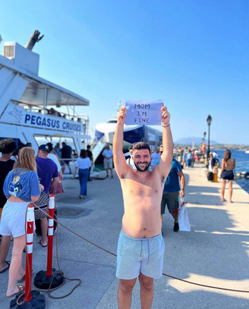 Ο ίδιος τρόλαρε με έναν επικό τρόπο την ανησυχία της μητέρας του, και πόζαρε με ένα πλακάτ έξω από το καράβι στέλνοντας στη μητέρα του το μήνυμα ότι είναι καλά στην υγεία του.