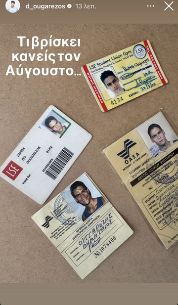 Αρχικά, ο Δημήτρης Ουγγαρέζος “μαρτύρησε” ότι βρήκε κάποιες παλιές φοιτητικές ταυτότητες και πάσο για τα ΜΜΜ, σημειώνοντας “Τι βρίσκει κανείς τον Αύγουστο”. Έπειτα, δημοσίευσε μια σειρά φωτογραφιών από την ορκωμοσία του στο πανεπιστήμιο, τη θητεία του στον στρατό αλλά και ταξίδι του στο εξωτερικό.