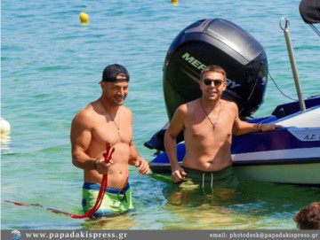 Ο φωτογραφικός φακός τον απαθανάτισε σε παραλία του νησιού, με φιλική παρέα, όσο ετοιμαζόταν να κάνει τη βόλτα του με το σκάφος του.