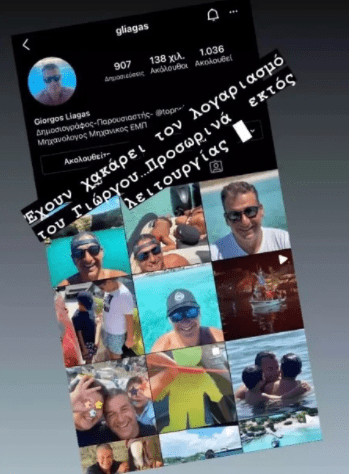 Η Φαίη Σκορδά, θέλησε να ενημερώσει το κοινό του Instagram για το τι συμβαίνει με τον Γιώργο Λιάγκα, και δημοσίευσε μια φωτογραφία του λογαριασμού του, αποκαλύπτοντας το ατυχές γεγονός. “Έχουν χακάρει τον λογαριασμό του Γιώργου. Προσωρινά εκτός λειτουργίας”, σημείωσε η ίδια.