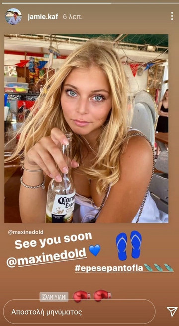 Ο 24χρονος Ροδίτης boat organizer, την θέλει πίσω στην ζωή του και δεν σταματά να της το δείχνει. Η ξανθιά Maxine από την Γερμανία του έχει “κλέψει” τη καρδιά για τα καλά και μάλιστα, αποκάλυψε πως έχει σοβαρό σκοπό μαζί της.
