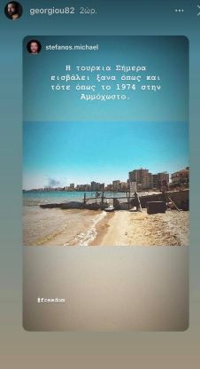Ο καλλιτεχνικός κόσμος της Κύπρου αντιδρά με το δικό του τρόπο μέσα από τα social media στέλνοστας ένα ξεχωριστό μήνυμα σε όλους. #idonotaccept λέει από το Βαρώσι η Αλέξια η οποία μετέδιδε live την διαμαρτυρία , ενώ ηθοποιοί και τραγουδιστές όπως ο Ανδρέας Γεωργίου, Στέφανος Μιχαήλ, Ελευθερία Ελευθερίου, ανεβάζουν παλιές φωτογραφίες από την παραλία κάνοντας λόγω για μια νέα «εισβολή».
