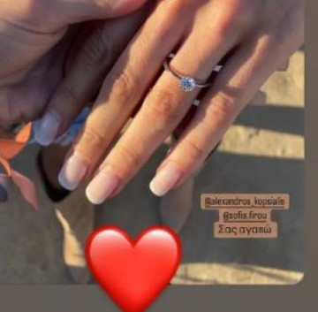 Λίγη ώρα αργότερα, φίλη της Σοφίας Φυρού ανάρτησε ένα story στο Instagram με το μονόπετρο που της χάρισε ο Αλέξανδρος Κοψιάλης