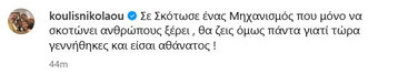 Ανάμεσά στους υποστηρικτές και ο Κούλλης Νικολάου, ο οποίος με μια συγκινητική ανάρτηση στον προσωπικό του λογαριασμό στο Instagram αποχαιρέτησε τον Kirk, γράφοντας: