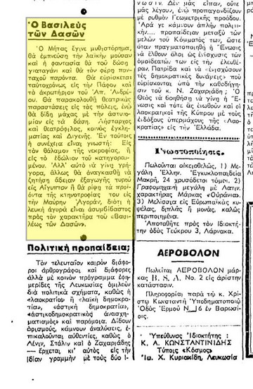 l Στα Κελοκέδαρα κλάπηκαν 10 αίγες από τον Ζαχαρία Αριστάρχου. Δια την επιστροφή μερικών ζώων σύμφωνα με τις πληροφορίες της εφημερίδας πληρώθηκαν λύτρα