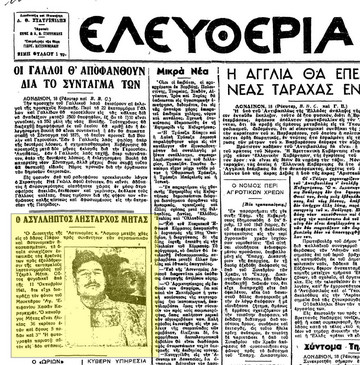 Ο Κυβερνήτης της Κύπρου θεσπίσε τον Περί Φυγοδίκων Νόμο, και κυκλοφόρησε νέα επικήρυξη για τους 5 φυγόδικους και φονιάδες. Οι 5 φυγόδικοι ήταν : ο Τζεμάλ Μίτας, ο Ξενοφών Παναγή, ο Γιώργος Θεμιστοκλή, ο Ηλίας Γεωργίου/Ορνιθάρης και ο Κωνσταντίνος Δημήτρη.